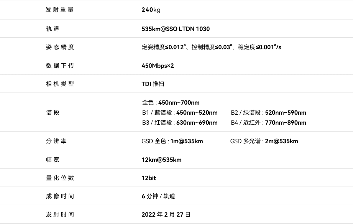 泰景三号01星是中国首颗由民营企业研制1m分辨率遥感卫星,卫星平台采用模块化小卫星平台,整星重量240kg,携带电推进系统,为卫星提供变轨和轨道高度维持能力,卫星设计寿命5年以上,对于国土资源监测、地理测绘、城市规划、能源矿产等诸多领域都具有很高的商业价值,可向用户提供全球范围内高空间分辨率、高时间分辨率的卫星遥感图像。